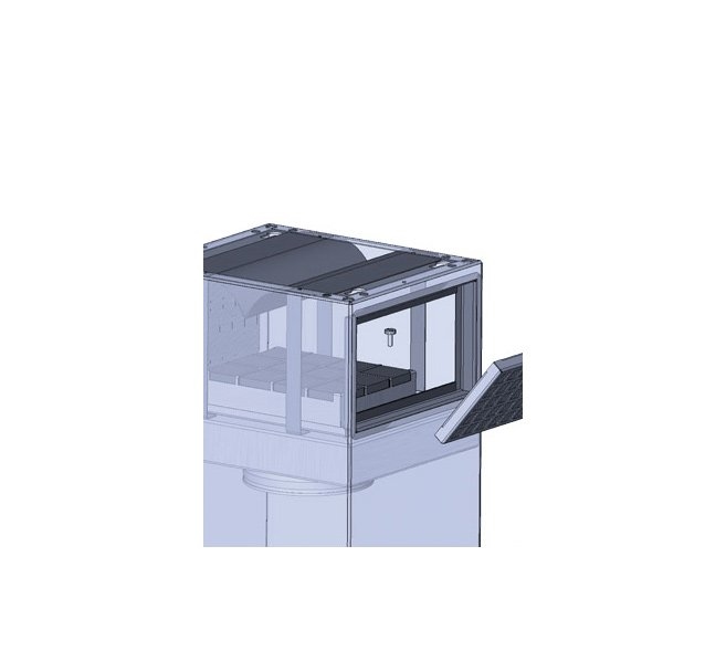 Any fumes possibly not fully collected by the central slot extractor in the middle are extracted at the corner edge at the latest by the extraction effect arising between the used elements (glass, stainless steel). Deposits are avoided.